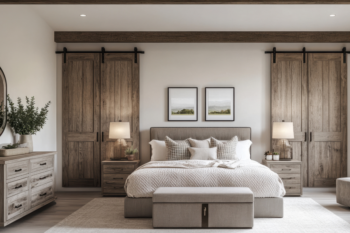 A cozy mountain-inspired room with a private fireplace, perfect for chilly evenings. Rustic charm meets modern comfort with plush linens, natural materials, and a serene atmosphere.